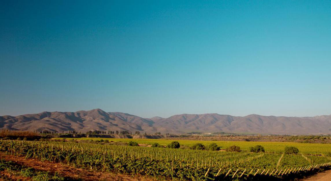 明朗如鏡的天空,映襯著連綿起伏的山丘,偶爾可見(jiàn)仙人掌、山楂樹(shù)和其它一些低矮的灌木叢,而在山谷之地,卻分布著成片的葡萄園,綠色的葡萄葉、黃色的土地與藍(lán)色的天空交相輝映,這就是阿塔卡馬沙漠(Atacama Desert)南部的風(fēng)光,著名的利馬里谷(Limari Valley)產(chǎn)區(qū)便坐落于此。