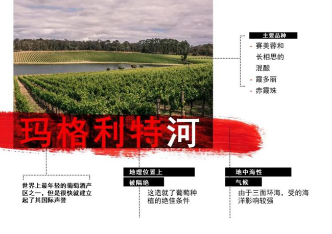 瑪格利特河是世界上最年輕的葡萄酒產區之一。從上世紀70年代初的第一個年份開始,它就迅速建立起了作為優質葡萄酒之鄉的國際聲譽。它為出產高品質的澳洲葡萄提供了一個純凈的環境。