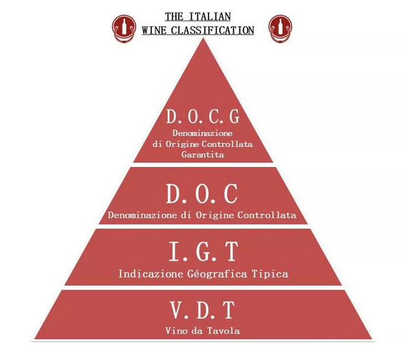 意大利的葡萄酒分級制分4個等級,從高到低依次為:DOCG(最高級)、DOC、IGT、VDT(普通等級餐酒)。不過,這個分級制度僅供參考,因為也有很多酒莊認為一些規(guī)定太死板,而不搞這套,有時一些意大利頂級葡萄酒竟然只標VDT或IGT也不足為奇。