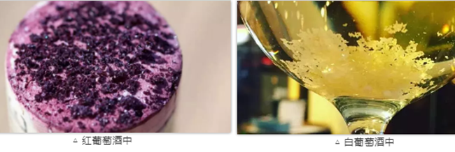 在紅葡萄酒中,酒渣一般呈現(xiàn)為紫紅色的結(jié)晶體或沉淀,而在白葡萄酒中則會(huì)呈現(xiàn)為半透明的晶狀碎渣。