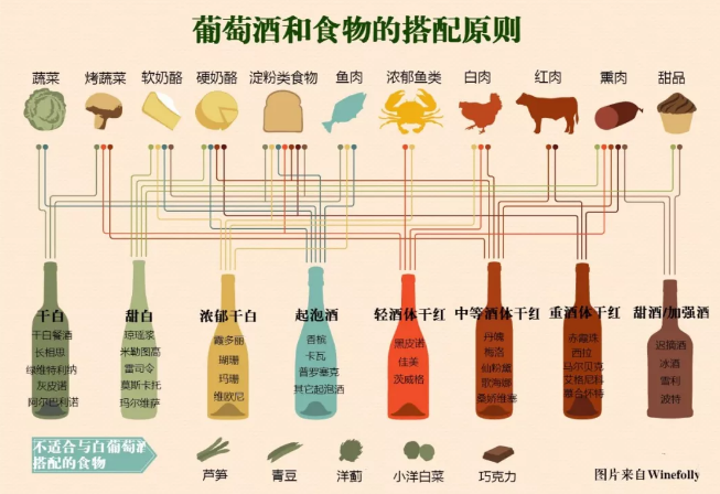 今天,小編帶來一張挺詳盡的配餐原則圖,不管是酒配餐,還是餐配酒,日常夠用妥妥的!趕緊收藏!
