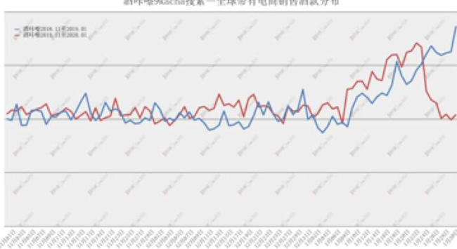 在Nov 2019 to Jan 2020——Nov 2018 to Jan 2019階段,Baidu搜索量平穩(wěn)增長,作為傳統(tǒng)節(jié)日的春節(jié)后因假期及外部環(huán)境原因開始下滑。而同一時期內,9kacha搜索量增長明顯,9kacha用戶群體中,約1/3為葡萄酒行業(yè)用戶,受春節(jié)、提前進入假期及外部環(huán)境原因,搜索量開始下滑,整個葡萄酒行業(yè)受假期及外部環(huán)境原因影響更加明顯。