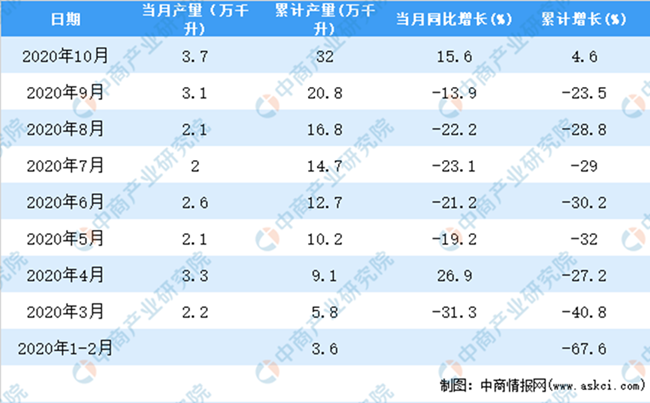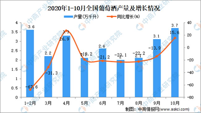 6. 2020年1-10月中國葡萄酒產量數據統計分析