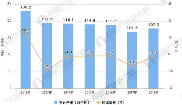 具體來看,2016年全國葡萄酒產(chǎn)量達113.7萬千升,同比下滑1%。預(yù)計2018年中國葡萄酒產(chǎn)量將下滑至107.2萬千升。