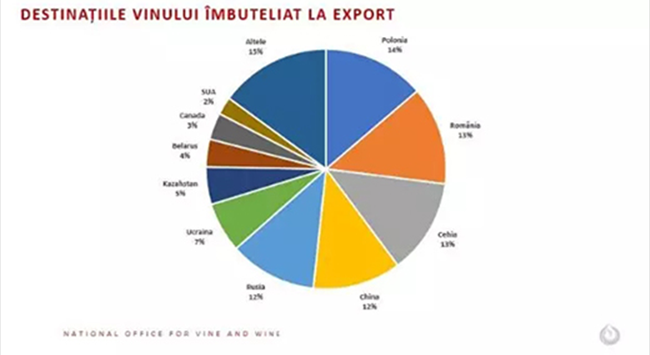 波蘭、羅馬尼亞、捷克、中國和俄羅斯仍然是摩爾多瓦瓶裝葡萄酒的主要市場。出口到美國(+11%)、捷克共和國(+8%)、羅馬尼亞(+5.8%)、烏克蘭(+3.7%) 的瓶裝葡萄酒數(shù)量有所增加,出口到中國和拉脫維亞的數(shù)量保持穩(wěn)定,但是出口至哈薩克斯坦(-30%)、俄羅斯(-16.9%)、加拿大(-11.8%)、波蘭(-5%)的瓶裝葡萄酒數(shù)量有所下降。