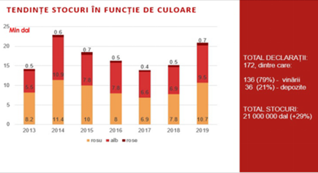 瓶裝葡萄酒的出口總值為13.76億列伊,與2018年指標持平,而散裝葡萄酒的出口總值下滑至 9.76億列伊(-3.6%)。葡萄酒出口總值為23.52億列伊(-1.9%)。