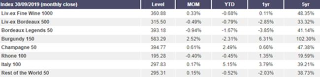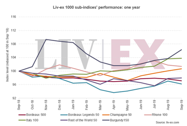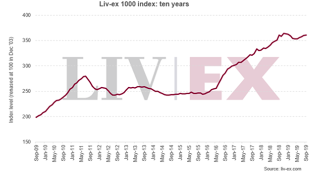 2019年至今,在,Liv-ex 1000(最廣泛衡量優(yōu)質(zhì)葡萄酒市場表現(xiàn)的指數(shù))下跌了0.7%。 該指數(shù)在9月份上升0.3%,收于360.88點。