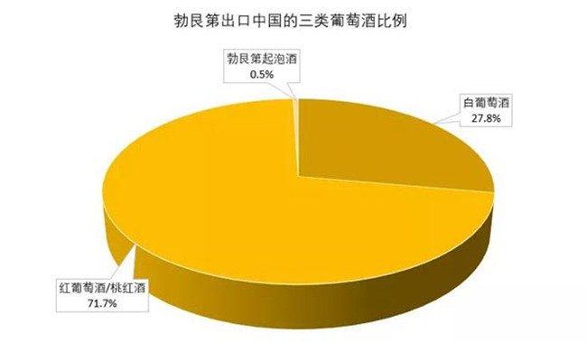 勃艮第紅葡萄酒在中國市場一直占據著比較重要的位置,2018年中國進口的勃艮第葡萄酒中,紅葡萄酒占71.7%,而實際上勃艮第其實主要以生產白葡萄酒為主(61%的白葡萄酒,29%的紅葡萄酒)。