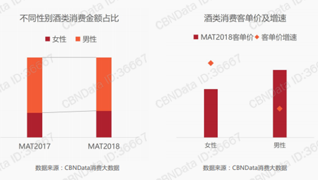 數據顯示,中國女性消費酒水的金額比例和客單價雙雙上升。