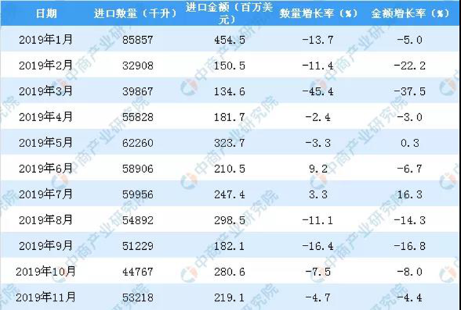 2019年1-11月中國(guó)葡萄酒進(jìn)口量同比下降10.6%