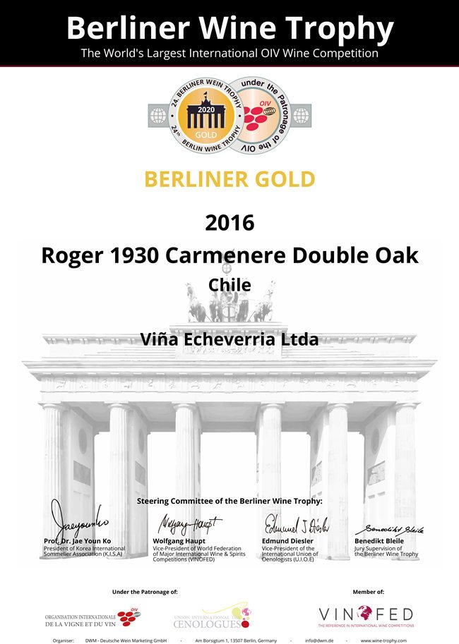 (羅吉爾1930-羅伯特——2020柏林葡萄酒大獎賽金獎 榮譽證書)
