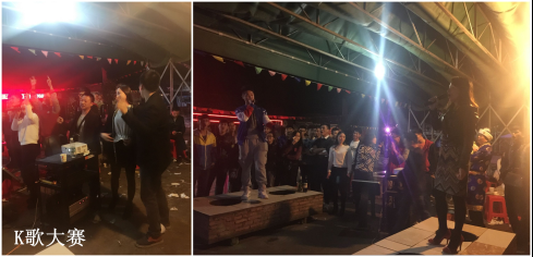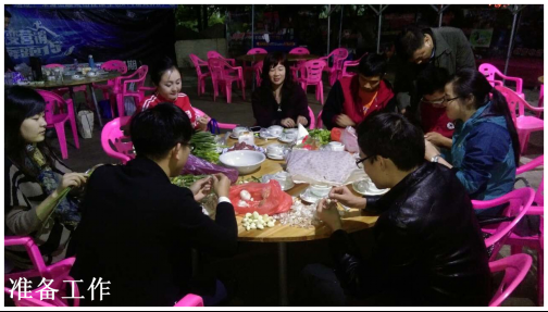 25號當天,負責采購的同事根據大家寫好的菜單,提前采購好所需要的雞、鴨、魚、肉、蔬菜等各色原料,以及油鹽醬醋等各種調味品,開始做好活動前的各項準備工作。當天下午5點,大家在公司領導莊總、劉總、曾總的帶領下,陸續到達活動現場——位于南城水濂山腳下順風山莊內的蒙之味烤全羊原生態KTV燒烤廣場。